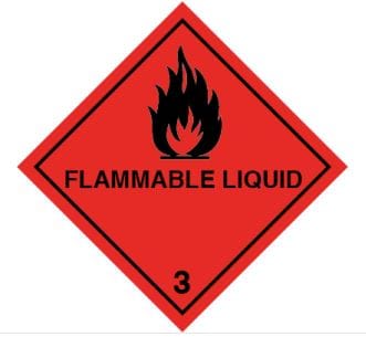 Class 3 Goods need to carry the correct label when being transported. The labels are very easy to make out as they are a flame symbol, coloured either black or white and have the number 3 below them.